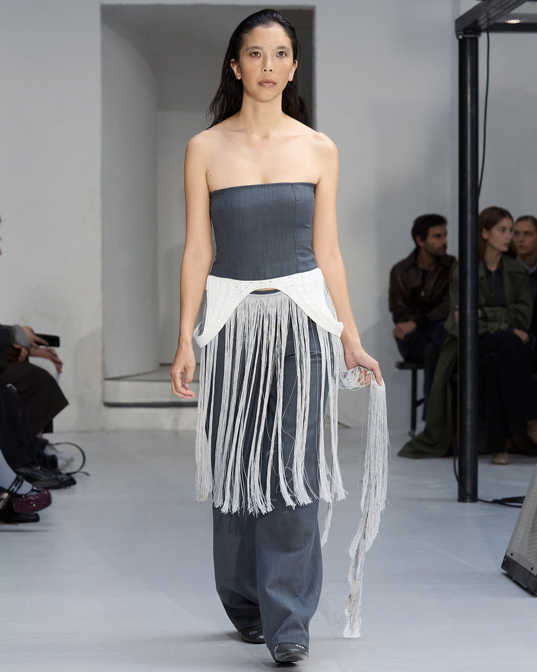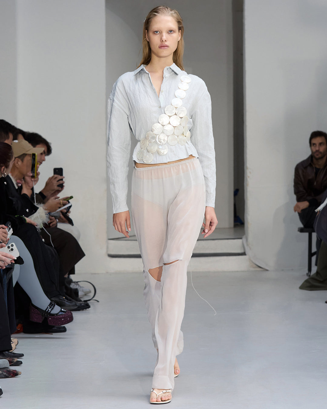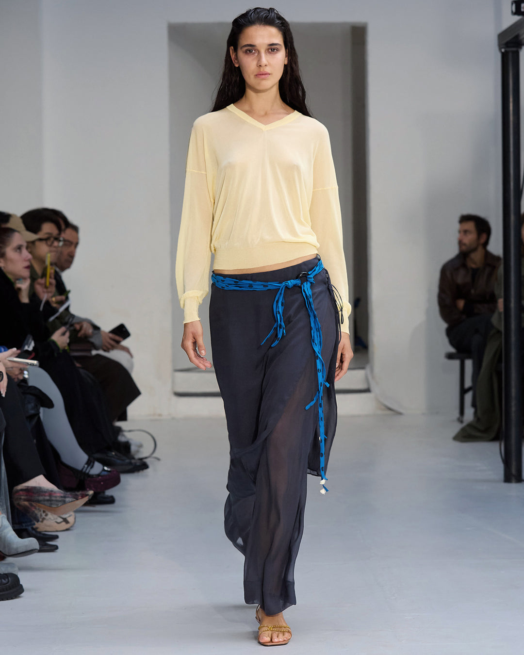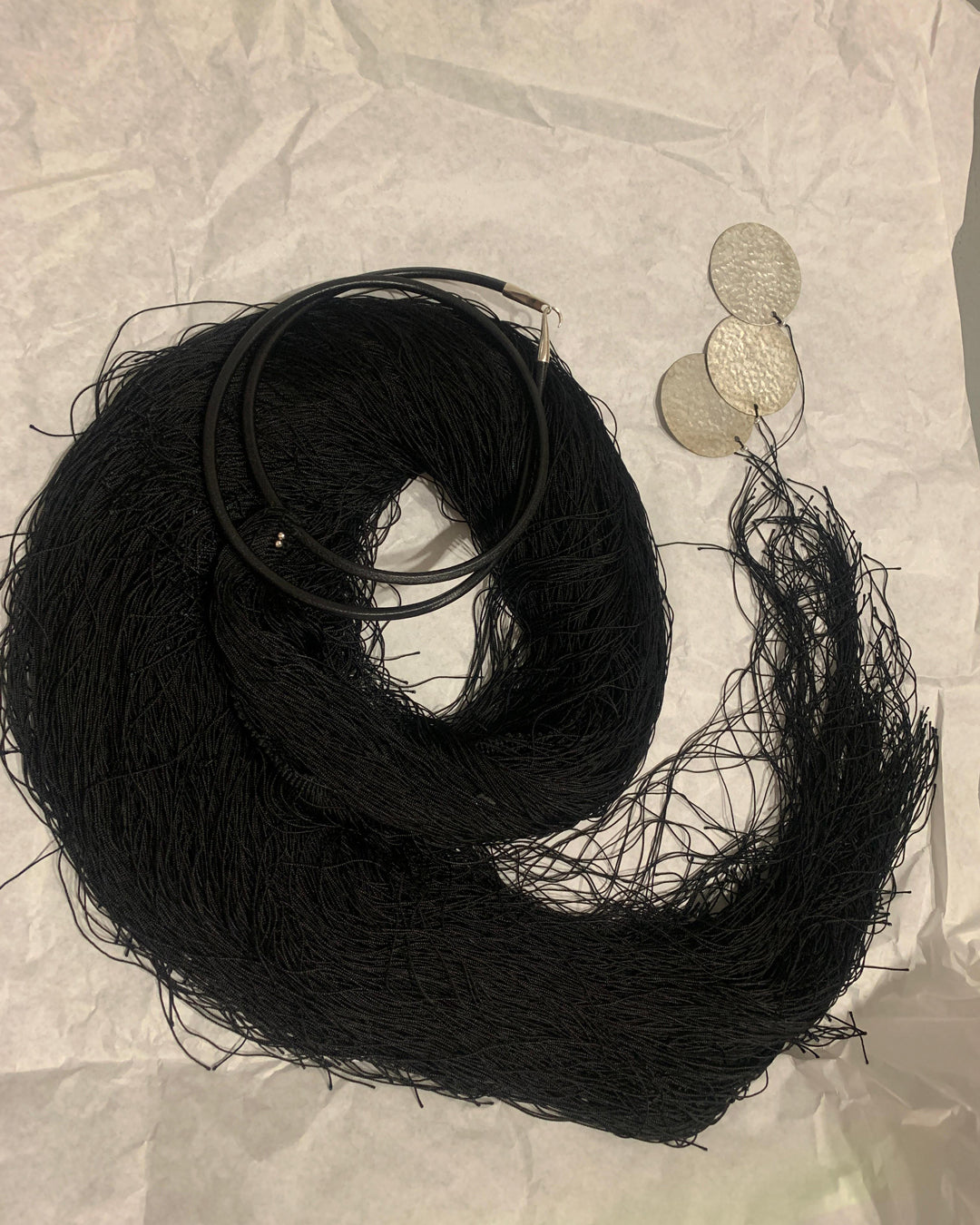 This collection includes a collaboration with jeweler Anna Santangelo, who designed a custom fine line for the show. She has handcrafted each piece at her atelier, creating one-of-a-kind pieces of jewelry.