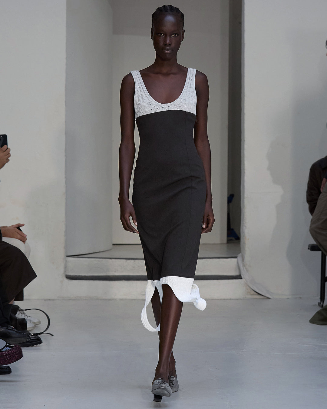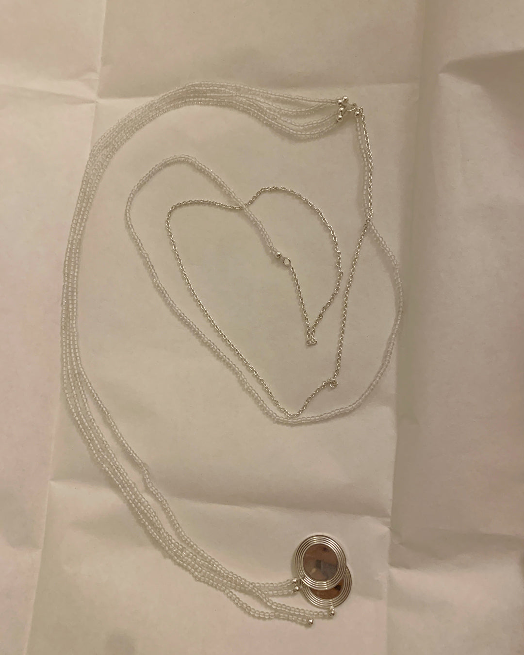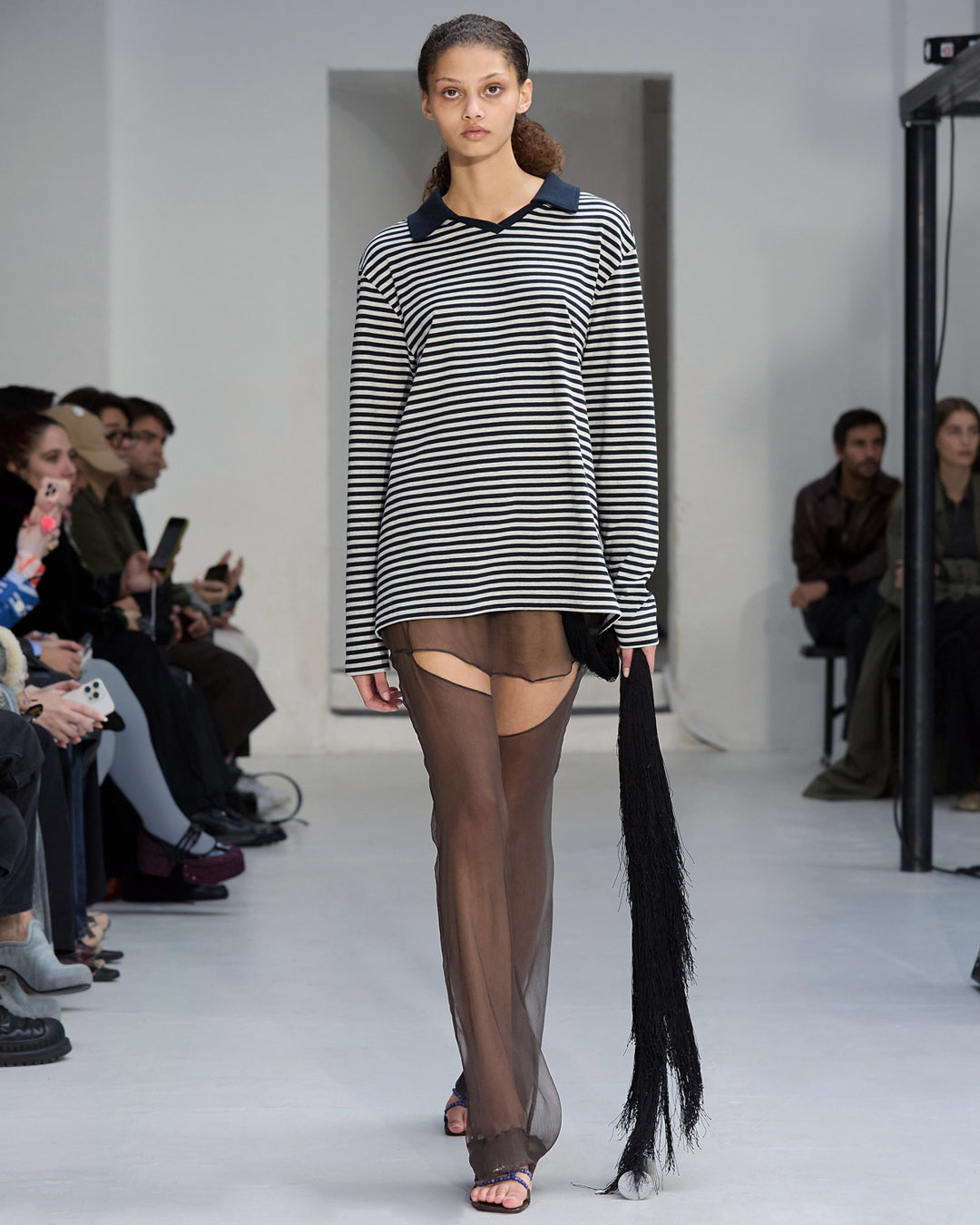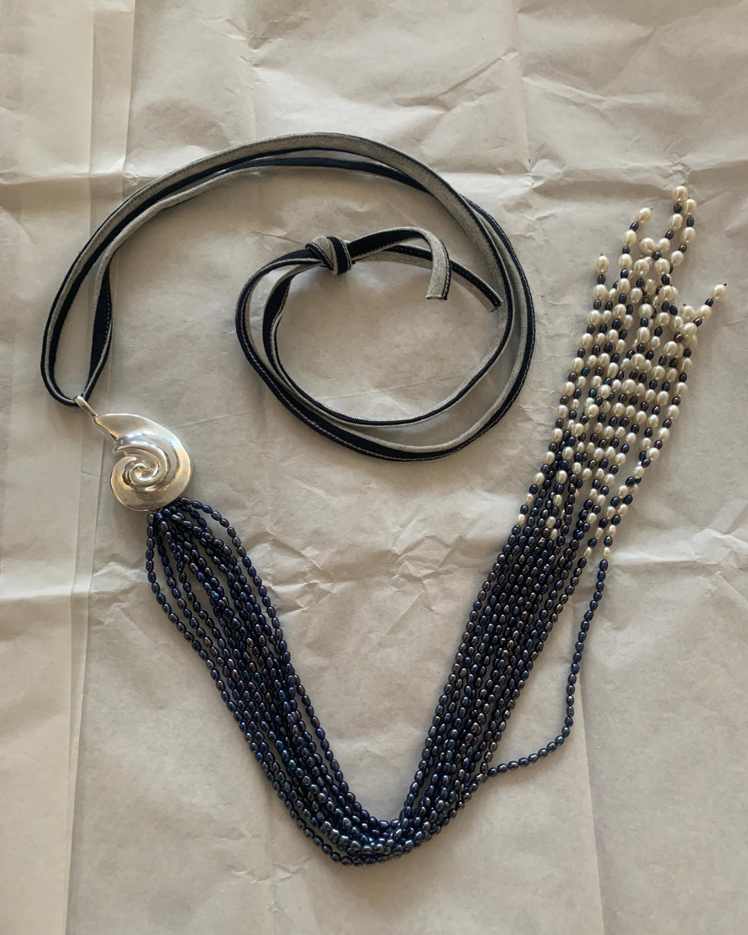 This collection includes a collaboration with jeweler Anna Santangelo, who designed a custom fine line for the show. She has handcrafted each piece at her atelier, creating one-of-a-kind pieces of jewelry.