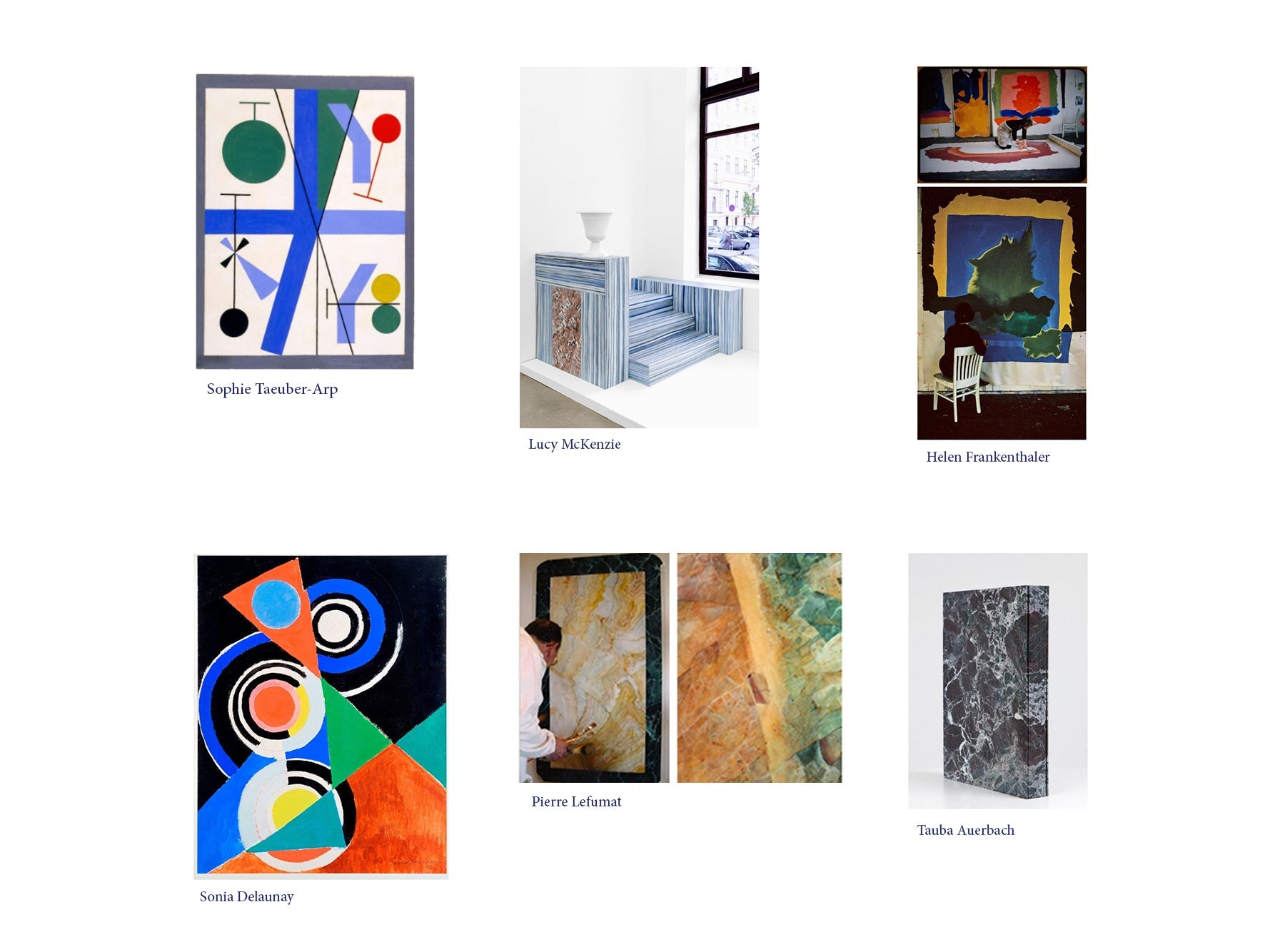 Sophie Taeuber-Arp, Lucy McKenzie, Helen Frankenthaler, Sonia Delaunay, Pierre Lefumat and Tauba Auerbach.